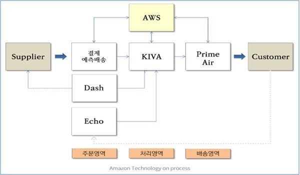 구매과정 자체가 자동화된 주문(Iot/예측배송)->피킹(KIVA)->배송(Prime Air)가 쉬지 않고 끊임없이 이루어지는 것이다.
