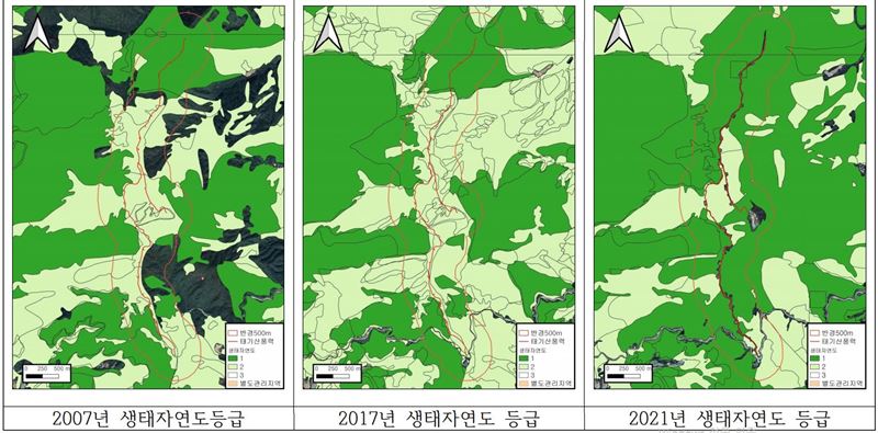 양이원영 의원(비례대표, 산업통상자원중소벤처기업위)은 환경부와 국책연구기관인 한국환 경정책평가연구원(KEI)으로부터 제출받은 자료를 통해 태기산 풍력단지 주변 생태자연도가 풍력발전기가 들어서기 전보다 그 후가 상승되는 것을 확인했다고 밝혔다.