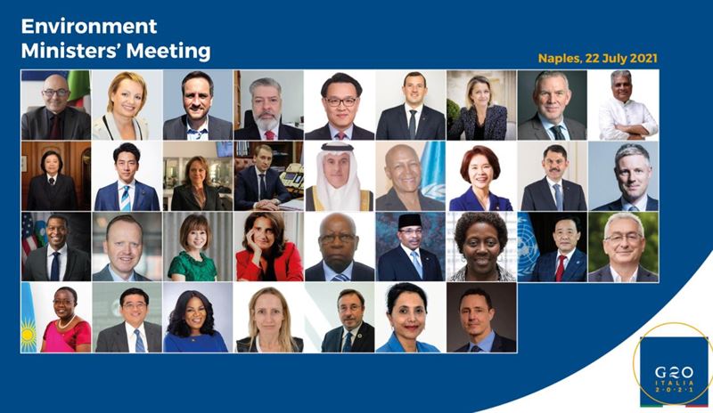 환경장관회의(7월22일)에서는 ▲생물다양성 등 자연자본의 보호 및 관리 ▲지속가능하고 순환적인 자원이용을 위한 공동노력이란 주제로 주요 20개국 협의체의 공조방안이 논의됐으며, 서식지 황폐화, 기후변화 등 상호연계된 위기 극복을 위해서는 자연과의 관계재정립이 필요하다는 확인과 함께, 해양보존 등 자연회복 및 순환경제 촉진 등 국제적 의지결집이 필요한 주요분야를 다루는 선언문을 채택했다.