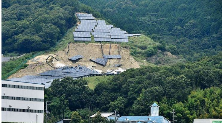 대형 태양광 발전소(메가솔라)에서는 패널이 강풍으로 날아가거나 시설이 있는 경사면이 호우로 붕괴되는 사례가 있어 주민들은 2차 재해와 환경 파괴를 우려하고 있다.