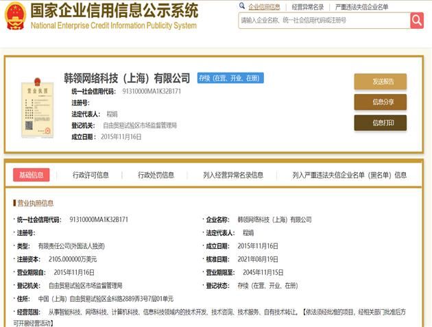 쿠팡 중국자회사 한림네트워크 영업집조.(자료=양정숙 의원실)◇쿠팡자회사'한림네트워크(상해/베이징)유한공사'에 개인정보 보관, 관리중