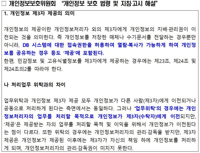 그는 "개인정보보호위원회(개보위)는 '개인정보 보호 법령 및 지침·고시 해설서'를 통해 개인정보 열람의 의미를 '데이터베이스(DB) 시스템에 대한 접속권한을 허용해 열람, 복사가 가능하게 해 개인정보를 공유하는 경우 등도 제공에 포함된다'로 정의하고 있다"고 말했다.