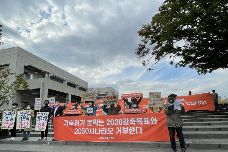 "현재 한국정부의 불충분한 감축목표로는 기후악당의 오명을 지속시킬 뿐이다. 지금 필요한 것은, 기후위기를 막을 수 있는 정의로운 2030 감축목표다. 정부는 탄소예산에 기반하여 기후위기 대응 계획을 세우고, 배제와 착취가 없는 온실가스 감축목표를 수립해야 한다. 이윤과 성장이 아닌, 모든 시민과 지구 생명들의 권리를 위한 기후정의가 지금당장 실현되어야 한다."고 기후위기비상행동 선언문을 통해 밝혔다.