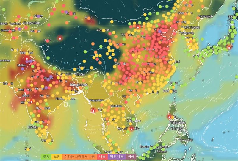 한편 중국은 동절기로 들어가면서 석탄수요가 급증하면서 중국의 미세먼지와 대기오염이 서해상으로 유입되면서 한국도 영향을 받아 대기질이 안좋은 상황이다. IQAir 의 대기질 및 공해도시순위에서 2021.12월5일 현재 인천 광역시가 29위로 나타났다.