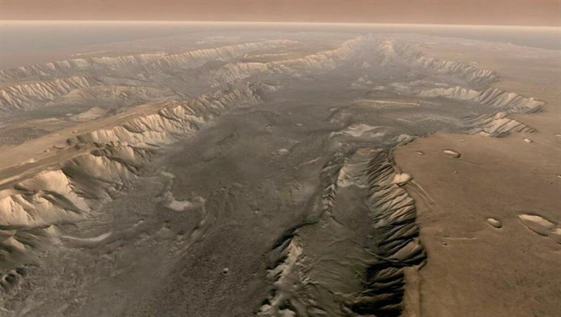 유럽 ??우주국(European Space Agency)의 엑소마스(ExoMars) 궤도선은 태양계에서 알려진 화성의 마리넬리스 협곡(Valles Marineris)에서 "상당한 양의 물"을 발견했다.