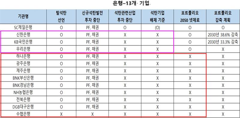 ◇금융기관, 실효성 있는 탈석탄 정책 부재