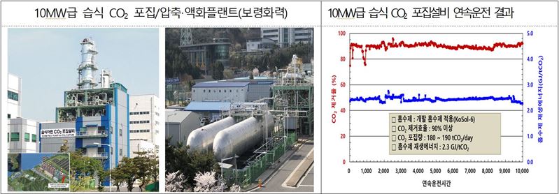 기술개발 주요 성과. (자료=산업통상자원부)개발된 포집기술은 LNG발전과 산업계(시멘트·석유화학·철강 등) 포집 실증에 응용 적용해 중규모 포집 실증으로 확대하고 단계별로 격상해 2030년 이전까지 산업별 상용급 포집 기술의 개발·보급을 완료할 계획이다. LNG,석유화학,시멘트 등 포집기술 격상 사업도 2021년~2025년 까지 추진한다.