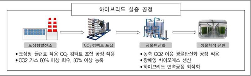 하이브리드 동시 처리 공정 기술 개발을 통해 공간이 협소해 기존 CCUS 설비를 설치할 수 없었던 도심 발전소와 산업단지에서 활용 가능한 포집기술을 확보하고 미세조류 기술과 연계했다. 주관기관인 한국지역난방공사는 분리막 기술을 통해 CO₂를 포집해 미세조류를 활용한 고부가물질(아스타잔틴 원료) 및 광물탄산화 생산 기술 개발을 통해 경제성 확보 가능성을 확인했다.