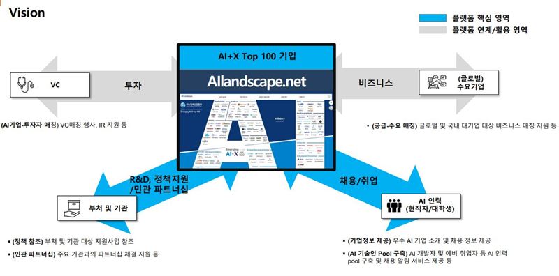 협회는 '2022 AI+X 톱 100' 기업 정보를 이용자들이 쉽게 파악할 수 있게 'AI 랜드스케이프(AI Landscape)'로 구축했다. 주요 내용은 홈페이지 랜드스케이프닷넷에서 확인할 수 있다. 협회는 이번 'AI+X 톱 100'에 선정된 기업을 위해 성과 홍보와 과기정통부 및 유관기관의 정책 지원 건의, VC 등 투자사와 연계 등을 추진, AI산업의 선순환 생태계 조성에 나설 예정이다.