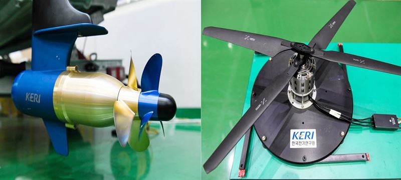 한국전기연구원(KERI, 원장 명성호) 전동력시스템연구센터 홍도관 박사팀이 선박과 항공기의 추진효율을 10% 이상 향상시킬 수 있는 '비접촉 마그네틱 기어 기반 상반회전 프로펠러' 기술을 세계최초로 개발했다.