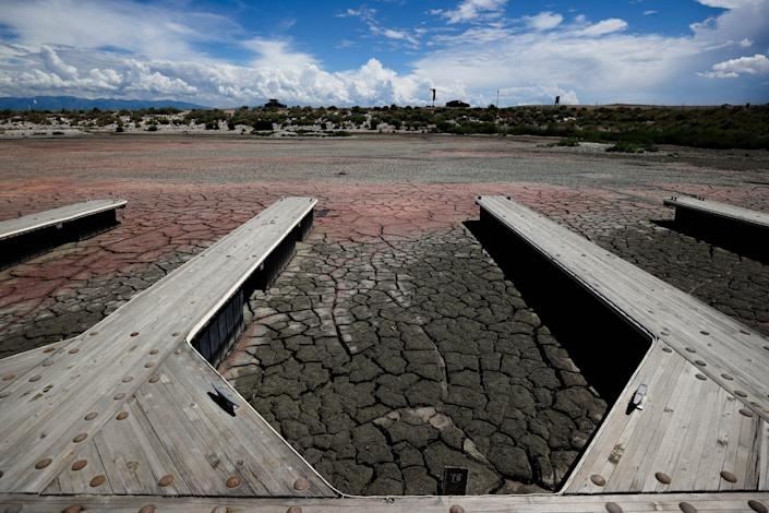 서반구에서 가장 큰 염수호인 유타주 그레이트 솔트레이크의 수위가 사상 최저 수준으로 떨어졌습니다. (사진=뉴욕타임스 저스틴 설리반)