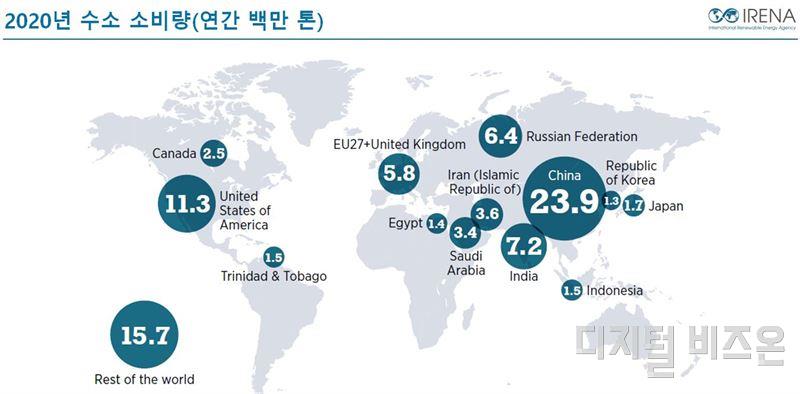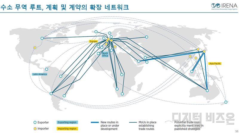 국제 재생 에너지 기구(IRENA)의 자료에 따르면 세계 수소 경제의 급속한 성장은 상당한 지리학적 및 지정학적 변화를 가져와 새로운 상호 의존성의 물결을 일으킬 수 있다고 전망했다.