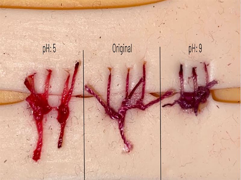 부상이나 외과적 치료로 상처가 오염되면 pH가 5에서 9로 상승한다. Taylor는 비트 주스가 pH 9에서 자연적으로 변하는 것을 발견하고 이를 봉합 제품의 염료로 사용했다.