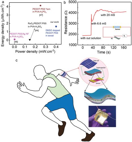 이 장치는 슈퍼커패시터의 전극 역할을 하는 폴리머의 얇은 층에 폴리에스터 셀룰로오스 직물을 코팅하여 작동한다. 직물이 착용자의 땀을 흡수함에 따라 땀에 있는 양이온과 음이온이 폴리머 표면과 상호 작용하여 에너지를 생성하는 전기화학 반응을 생성한다.