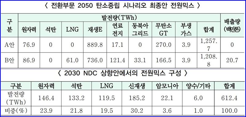 2030 NDC 상향안에서는 2030년까지 전환부문 온실가스 배출량 1.5억톤을 달성하기 위해 화력발전(석탄, LNG, 유류) 비중을 축소하는 대신 신재생에너지 확대와 암모니아 등 저탄소 내지 무탄소 연료의 혼소발전 활용을 명시하고 있다.
