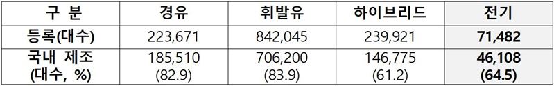 환경부(장관 한정애)는 지난해 총 10만338대의 전기차가 등록(신차등록 중 6%)됐고, 이 중 국내 제조차량은 7만4393대로 74.1%를 차지했다고 22일 밝혔다.