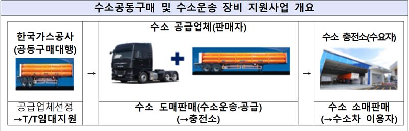 신청기관은 수소연료 공동구매사업에 선정된 공급업체에 운송장비 (튜브트레일러)를 저가로 임대 해주는 방식으로 유통비용을 낮춰 충전소에 저렴한 수소를 공급할 계획이다.