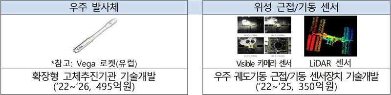 위성, 우주 발사체 등 도전적·혁신적 첨단 기술 분야의 대형과제로는 총 9개 과제에 1930억원이 투입된다.