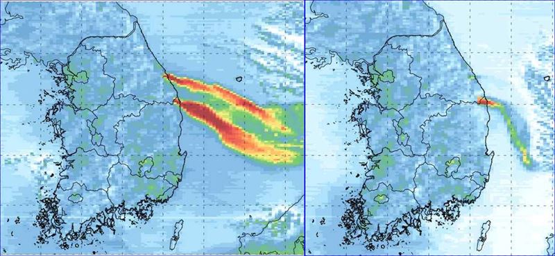 영상에서는 4일 울진 산불이 시작된 때부터 5일 강릉에서 추가 산불이 발생한 뒤 시간이 지날수록 다량의 에어로졸이 동해와 주변 지역으로 확산한 것으로 나타났다.