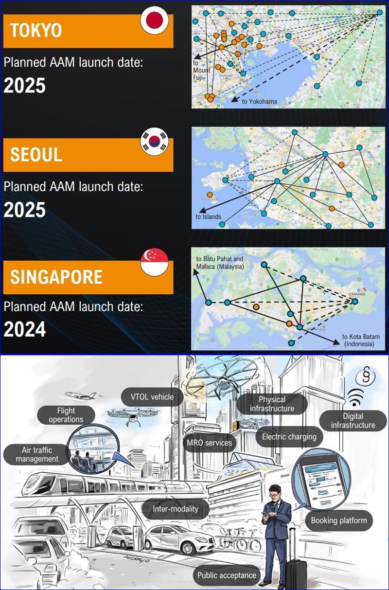 도쿄, 서울, 싱가포르와 같은 선두주자 도시들은 도시 인프라가 잘 발달 되어있고, AAM 생태계를 잘 구현하고 조정함으로써 이 흥미로운 미래 시장을 제공할 기회를 가지고 있다.
