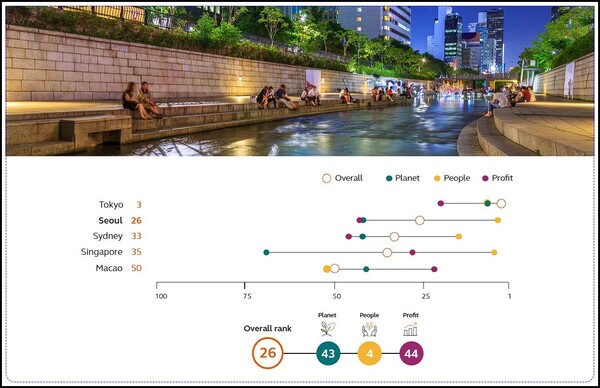 기업 나이츠는 전문가의 지식과 20년에 걸친 경험을 바탕으로 기후변화, 대기 환경, 토지 이용, 교통, 물, 폐기물, 정책, 순응성과 관련된 도시의 지속 가능성에 대한 공개 데이터 를 사용하여 세계 주요 도시의 지속 가능성 지수 순위를 발표했다고 보고서에서 밝혔다.