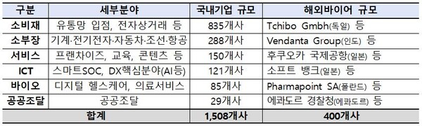 이번 상담회에는 소비재, 소재부품장비, 서비스, ICT, 바이오, 공공조달 등 6개 분야 전 세계 400개 바이어가 방한하여, 국내 1,500여 개사와 약 3,500건의 수출 상담이 진행된다.