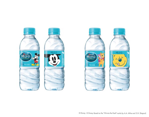 농심은 월트디즈니 컴퍼니 코리아(이하 디즈니코리아)와 협업을 통해 백산수330mL 제품에 디즈니 캐릭터 이미지를 삽입한 콜라보 제품을 선보인다.
