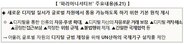 아울러, “향후 대통령 디지털 정책 구상인 ‘파리이니셔티브’의 방향성 하에 관련 논의를 ‘디지털 권리장전’과 연계하고 구체화 해 나가기 위한 폭넓은 논의를 지속해 나갈 예정이다.” 라고 말했다.