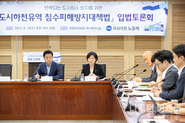 16일 국회 의원회관에서 '도시침수대책법'을 입법 토론회를 열었다. 노웅래 의원은 “시간당 최대 100mm 이상의 강우량을 보이는 이상기후가 일상화될 조짐을 보이고 있어 앞으로 발생할 도시침수 문제는 여태껏 우리가 경험하지 못한 새로운 재난이 될 것”이라 하면서, “도시침수대책법이 제정되면 홍수피해가 우려되는 지역에 대해 사전에 침수방지 계획과 대책을 세울 수 있게 돼 침수피해로 인한 인명피해가 반복되지 않도록 골든타임을 확보할 수 있을 것”이라고 법안 필요성을 설명했다.