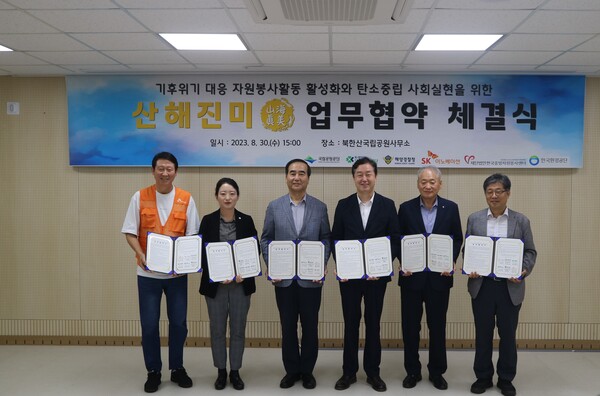 [디지털비즈온 이은광 기자] 환경부 산하 한국환경공단(이사장 안병옥)은 30일 북한산국립공원관리사무소에서 도로교통공단 등과 “산해진미 캠페인” 공동 추진을 위한 업무협약을 체결했다.