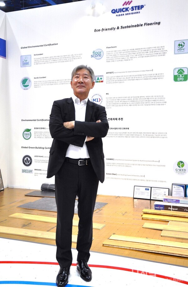 그는 "바로 소비자들의 눈높이 때문이다." 며 좀 더 친환경적인 욕구인 맞춤형 템포를 맞춰야 생존할 수 있어서라고 강조했다. "대표 브랜드 '퀵스텝(QUICK-STEP)'은 매우 뛰어난 기능성과 내구성을 갖춰 일반 마루로 차원이 다르다."고 설명했다.