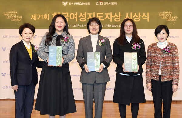 [디지털비즈온 이은광 기자] 한국YWCA연합회와 한국씨티은행은 11월 23일(목) 서울YWCA강당에서 제21회 한국여성지도자상 시상식을 진행했다. 제21회 한국여성지도자상 대상은 ㈜베어베터 이진희 공동대표에게 돌아갔습니다. 젊은지도자상은 법무법인 원 김보미 변호사가, 특별상은 덴마트한국인진상규명그룹 한분영 공동대표가 수상했다.