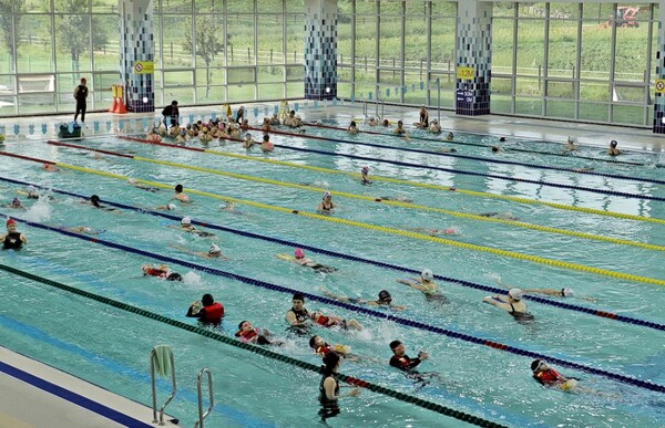 수영장 주말 및 공휴일 운영시간은 1부(9시~10시50분), 2부(12시~13시50분), 3부(15시~16시50분)이며, 신장이 130cm 미만인 학생과 미취학 아동은 이용이 제한된다.