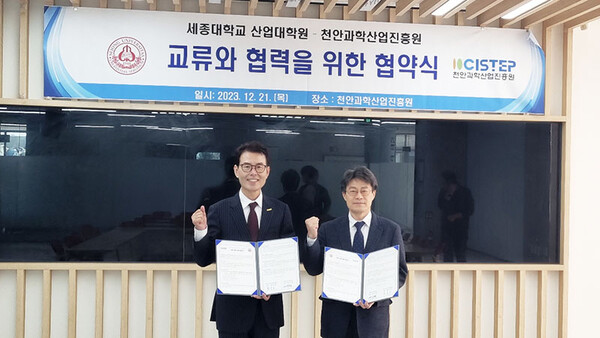 [디지털비즈온 이현주 기자] 세종대학교(총장 배덕효) 산업대학원은 지난 12월 21일 천안과학산업진흥원과 상호 개발과 협력 촉진을 위한 협정을 체결했다.