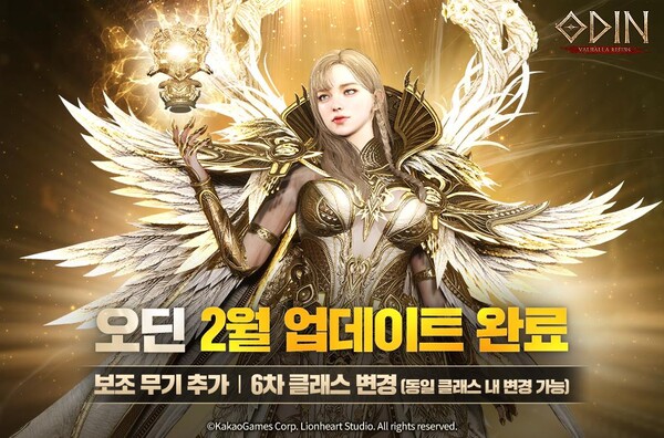 [디지털비즈온 이현주 기자] ㈜카카오게임즈(대표 조계현)가 28일, 라이온하트 스튜디오(의장 김재영)가 개발한 대작 MMORPG ‘오딘: 발할라 라이징(이하 ‘오딘’)’에 신규 장비 보조 무기를 추가하고 클래스 변경 시즌 6를 실시했다.