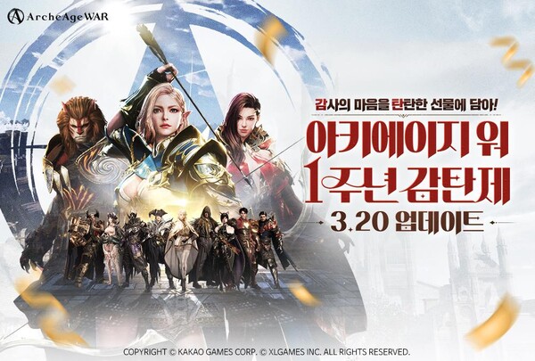 [디지털비즈온 이현주 기자] 카카오게임즈(대표 조계현)가 서비스하고 엑스엘게임즈(대표 최관호)가 개발한 ‘아키에이지 워’가 오는 3월 20일 서비스 1주년을 맞이한다.