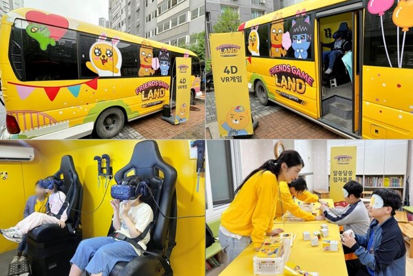 '찾아가는 프렌즈게임 랜드'는 게임 문화 접근성이 낮은 지역사회 또는 장애 아동 및 청소년 등에게 게임 콘텐츠 체험 기회와 즐거움을 제공하기 위해 운영하고 있는 캠페인이다. 이동식 버스에 '카카오프렌즈' 캐릭터와 함께 즐기는 '4D VR 게임 버스', 눈을 감고 촉각을 이용해 블록을 완성하는 '점자블록 게임' 등 다채로운 놀이 콘텐츠를 담아 대상자들을 직접 찾아가고 있다.