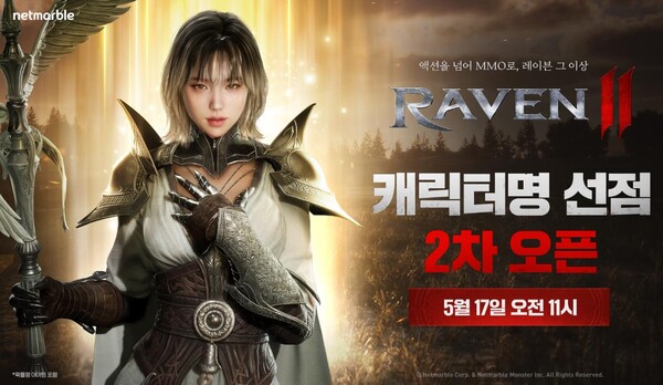 [디지털비즈온 이현주 기자] 넷마블(대표 권영식, 김병규)은 오는 29일 출시를 앞둔 블록버스터 신작 MMORPG ‘레이븐2’의 2차 캐릭터명 선점 이벤트를 오늘(17일) 오전 11시부터 진행한다고 밝혔다.