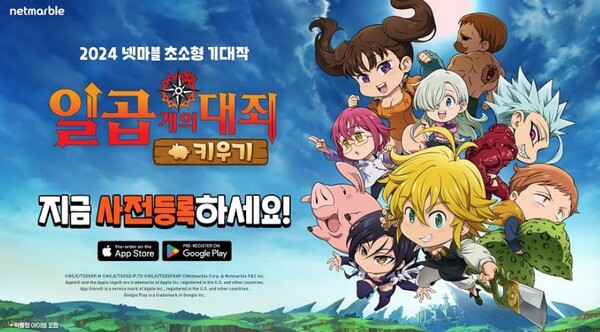 [디지털비즈온 이현주 기자] 넷마블(대표 권영식, 김병규)은 신작 모바일 캐주얼 RPG <일곱 개의 대죄 키우기(개발사 넷마블에프앤씨)>의 정식 출시를 예고하고 오늘부터 글로벌 사전등록을 시작한다고 23일 밝혔다.