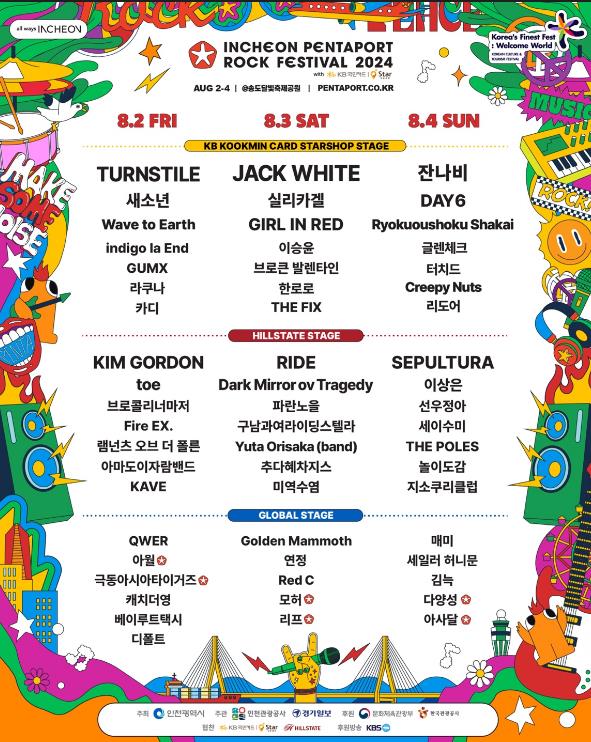 [디지털비즈온 이은광 기자] 인천광역시(시장 유정복)가 주최하고 인천관광공사(사장 백현)와 ㈜경기일보(회장 신항철)가 공동주관하는 [2024 인천펜타포트 락 페스티벌 X KB국민카드 스타샵 / 이하 2024 인천펜타포트 락 페스티벌]이 오는 8월 2일부터 8월 4일까지 3일간 송도달빛축제공원에서 개최된다.