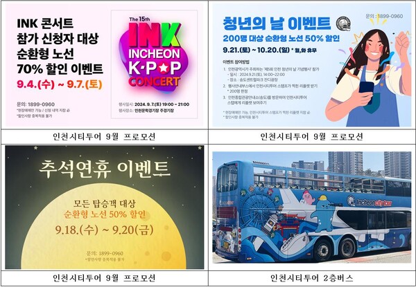 [디지털비즈온 이은광 기자] 인천광역시(시장 유정복)와 인천관광공사(사장 백현)는 9월에 인천시티투어 이용객을 대상으로 풍성한 이벤트를 준비했다고 밝혔다.