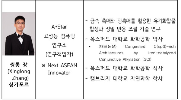 씽롱 장 연구책임자는 금속 촉매와 광촉매를 활용한 유기화합물 합성과 정밀 반응 조절 기술을 활발히 연구 중이다. 그는 시상식에서 한국의 우수 연구기관인 한국과학기술원(KAIST), 포항공과대학교(POSTECH), 울산과학기술원(UNIST) 등과 협력하여 기후변화 대응과 지속 가능한 기술혁신에 기여하겠다는 포부를 밝혔다.