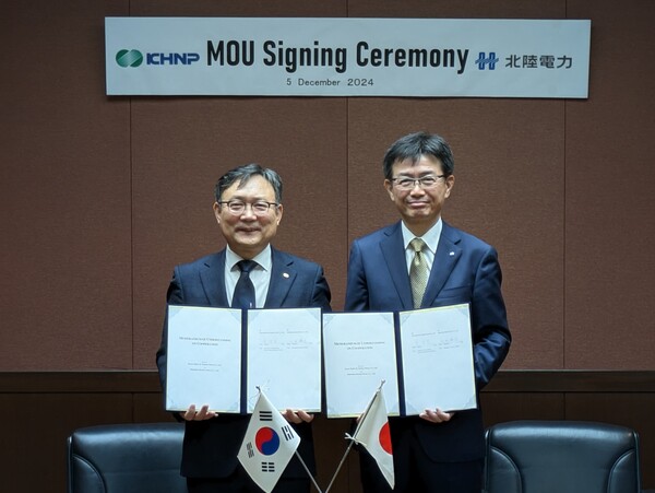 한국수력원자력(사장 황주호, 이하 한수원)이 5일 일본 도야마현 호쿠리쿠전력 본사에서 호쿠리쿠전력과 수력 분야 기술협력을 위한 MOU를 체결했다.