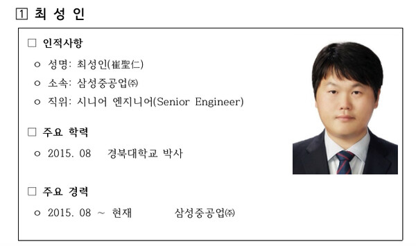 최성인 삼성중공업㈜ 시니어 엔지니어는 스마트 솔루션 분야 전문가로서 3차원(3D), 증강현실(AR), 디지털 트윈 등 다양한 정보통신(ICT) 기술 기반의 스마트 솔루션을 개발하여 조선업계 디지털 전환 및 업무 혁신에 기여한 공로를 인정받았다.