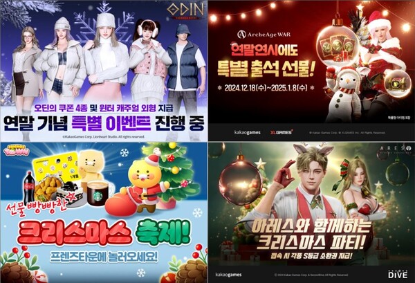 카카오게임즈(대표 한상우)는 20일, 자사가 서비스 중인 주요 모바일 게임 4종에서 크리스마스와 연말연시를 기념해 다양한 이벤트를 진행한다고 밝혔다.