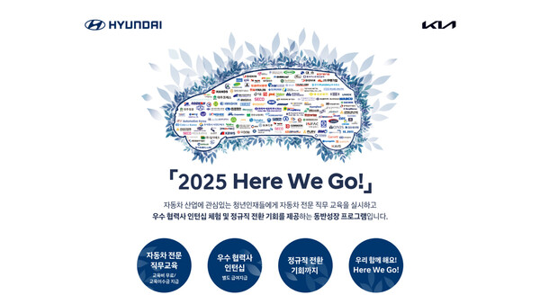 현대자동차·기아가 협력사의 인재 모집, 교육, 인턴십, 채용 연계까지 한 번에 지원하는 동반성장 프로그램 '2025 Here We Go!(히어 위 고)'를 실시한다고 25일(금) 밝혔다.