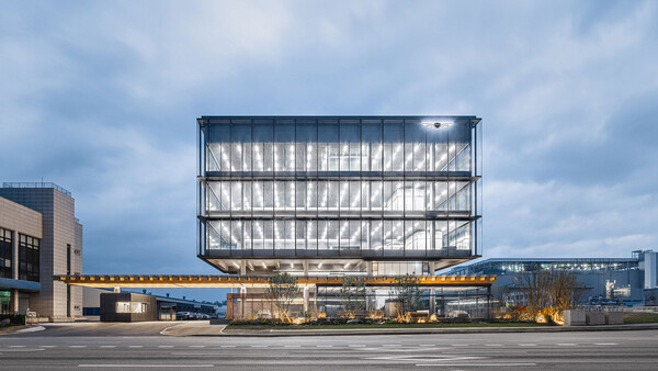캐노피 위로 위치한 건물의 상층부는 외벽에 투명한 유리 소재를 사용해 시간과 빛의 흐름에 따라 자연스럽게 변화하는 공간을 구현했다.
