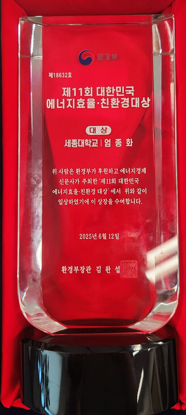 대한민국 에너지효율·친환경 대상은 탄소중립, 에너지 절약, 자원순환, 대기질 개선 등 환경부문에서의 탁월한 성과를 달성한 민간기업과 교육기관을 대상으로 수여되는 권위 있는 상이다. 세종대의 수상은 산학협력, 정책 연계, 융복합 기술 개발, 글로벌 교육 등 모든 영역에서 기후대응의 모범 사례로 평가받았음을 의미한다