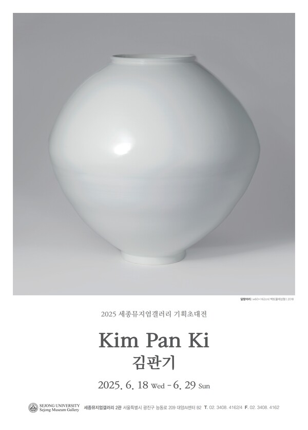 세종대학교(총장 엄종화) 세종뮤지엄갤러리 2관은 2025년 6월 18일부터 29일까지 전통 백자의 절제된 아름다움과 현대 도자의 감각을 아우르는 지강(之江) 김판기 명장의 기획초대전을 개최한다. 이번 전시에서는 단백하고 정제된 아름다움을 지닌 달항아리를 포함한 총 40여 점의 도자 작품이 선보인다.