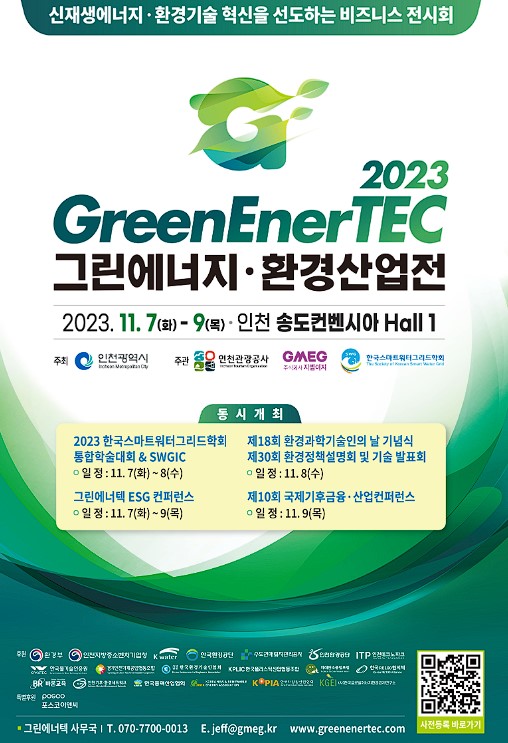 [디지털비즈온 이은광 기자] 신재생에너지·환경기술 혁신 선도의 장 『2023 그린에너지·환경산업전(GreenEnerTEC)』가 11월 7일(화)부터 9일(목)까지 3일간 인천 송도컨벤시아에서 개최된다.